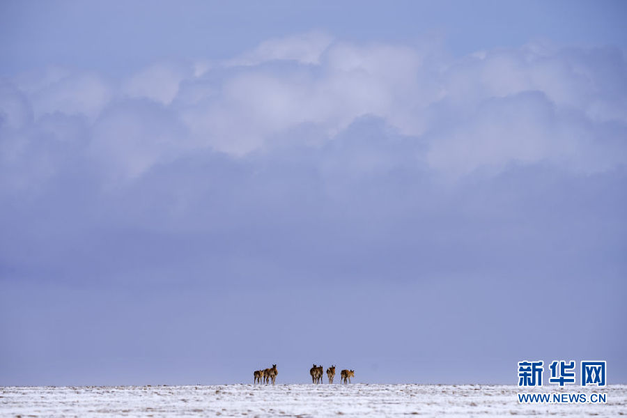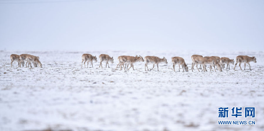 近日,可可西里迎來降雪,大量藏羚羊匯聚在可可西里五道梁地區(qū),踏上遷徙之路。