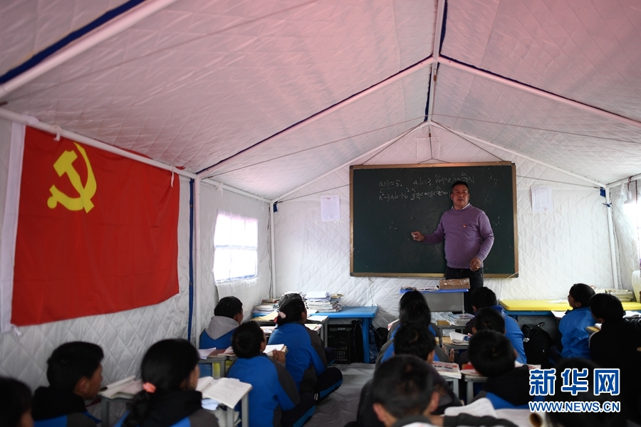 灰白色的天幕下,湛藍色的救災(zāi)帳篷顯得格外顯眼。學(xué)校教師拉毛措告訴記者:地震發(fā)生后,老師們組織186名學(xué)生在5分鐘內(nèi)全部疏散到操場,隨后轉(zhuǎn)移到搭建好的救災(zāi)帳篷內(nèi)。