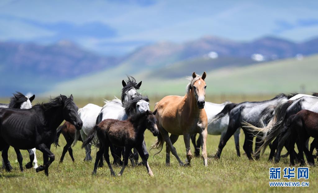 盛夏時(shí)節(jié),甘肅省甘南藏族自治州瑪曲縣河曲馬場(chǎng)繁育養(yǎng)殖的河曲馬馳騁嬉戲在風(fēng)光旖旎的草原上,成為當(dāng)?shù)匾坏烂利惖娘L(fēng)景。河曲馬歷史悠久,與內(nèi)蒙古三河馬、新疆伊犁馬并稱(chēng)為中國(guó)三大名馬。