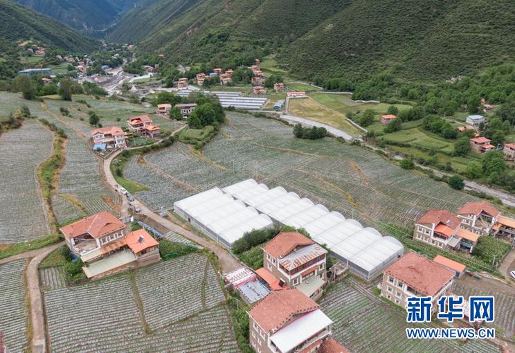 這是四川省阿壩藏族羌族自治州馬爾康市松崗鎮(zhèn)丹波村的蔬菜基地(8月12日攝,無人機(jī)照片)。新華社記者 江宏景 攝
