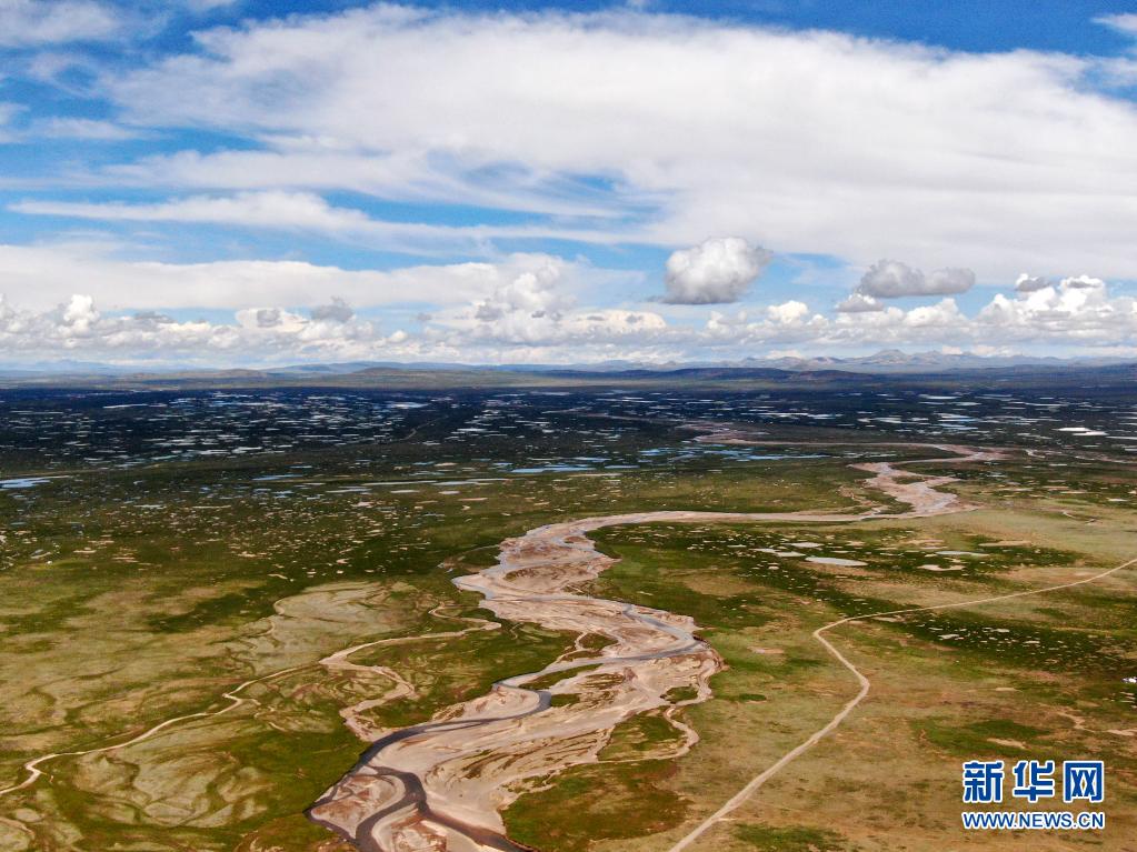 這是7月23日拍攝的長江源地區(qū)的查旦濕地(無人機(jī)照片)。新華社記者 張龍 攝