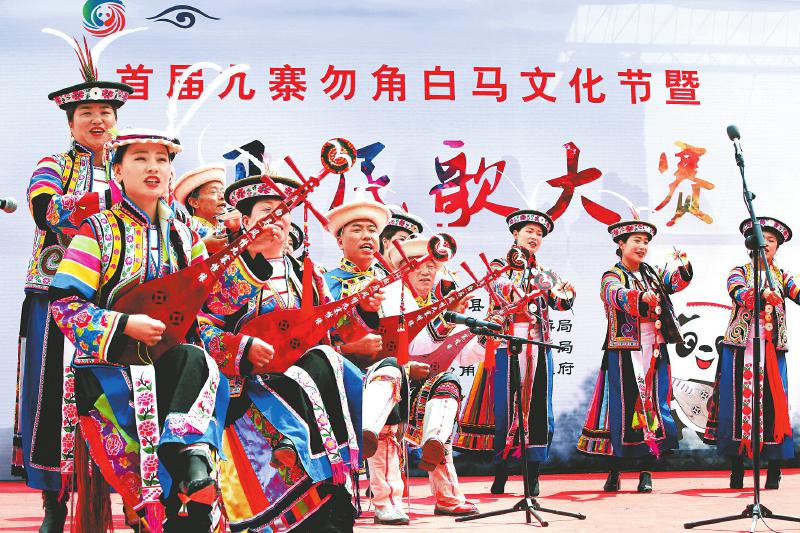 九寨溝縣白馬藏族群眾彈奏南坪曲子。(圖片除署名外由九寨溝縣委宣傳部提供)