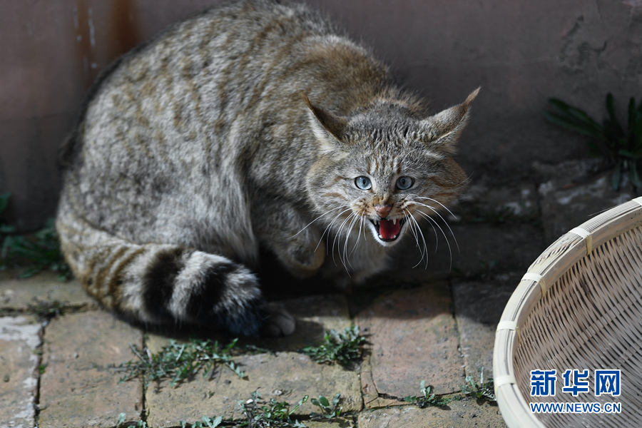 這是5月1日在西寧野生動(dòng)物園拍攝的一只人工救助的荒漠貓。新華社記者 張龍 攝