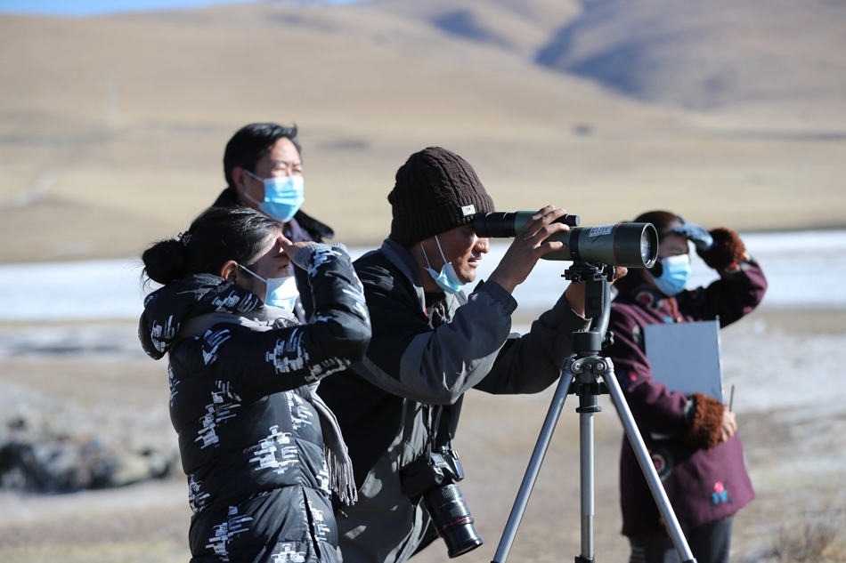 尕海保護(hù)站工作人員實(shí)地開(kāi)展鳥(niǎo)類監(jiān)測(cè)調(diào)查。