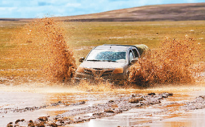 巡山車隊在可可西里無人區(qū)破浪前行。