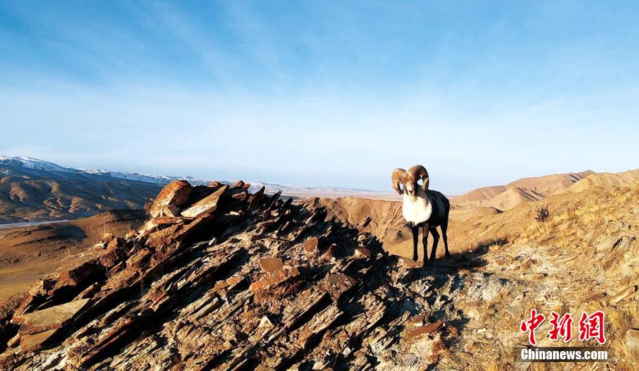 據(jù)介紹,盤羊為國家二級保護動物,是典型的山地動物,喜在半開曠的高山裸巖帶及起伏的山間丘陵生活,分布海拔在1500米至5500米左右的高寒草原、高寒荒漠、高寒草甸等環(huán)境中。盤羊被列入《世界自然保護聯(lián)盟瀕危物種紅色名錄》及中國《國家重點保護野生動物名錄》,夏季?;顒佑谘┚€的下緣,冬季棲息環(huán)境積雪深厚時,從高處遷至低山谷地生活,有季節(jié)性的垂直遷徙習(xí)性。