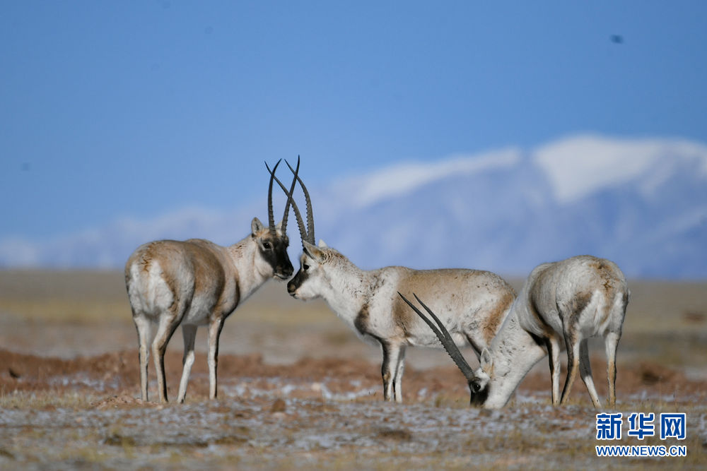 隆冬時節(jié),藏羚羊、野牦牛、藏野驢等“高原精靈”在可可西里覓食嬉戲??煽晌骼锟偯娣e4.5萬平方公里,平均海拔4600米以上,蘊藏著豐富的野生動物資源。2016年,可可西里國家級自然保護區(qū)整體劃轉至三江源國家公園,成為三江源國家公園的重要組成部分。