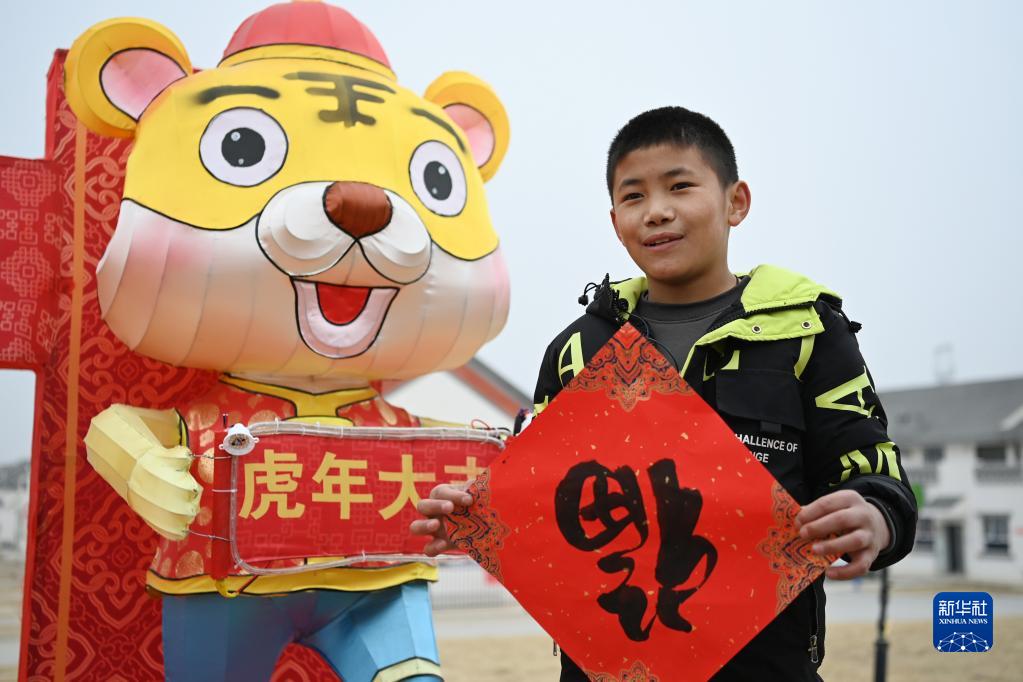 1月25日,在蘭州新區(qū)舟曲避險搬遷安置點(diǎn),搬遷群眾展示領(lǐng)取的福字。新華社記者 范培珅 攝