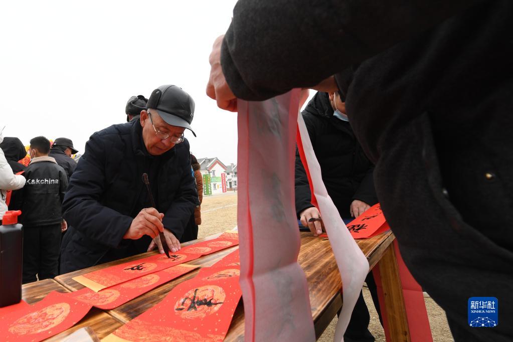 1月25日,在蘭州新區(qū)舟曲避險搬遷安置點(diǎn),舟曲地質(zhì)災(zāi)害避險搬遷第一臨時黨支部組織書法家給搬遷群眾送春聯(lián)。新華社記者 范培珅 攝