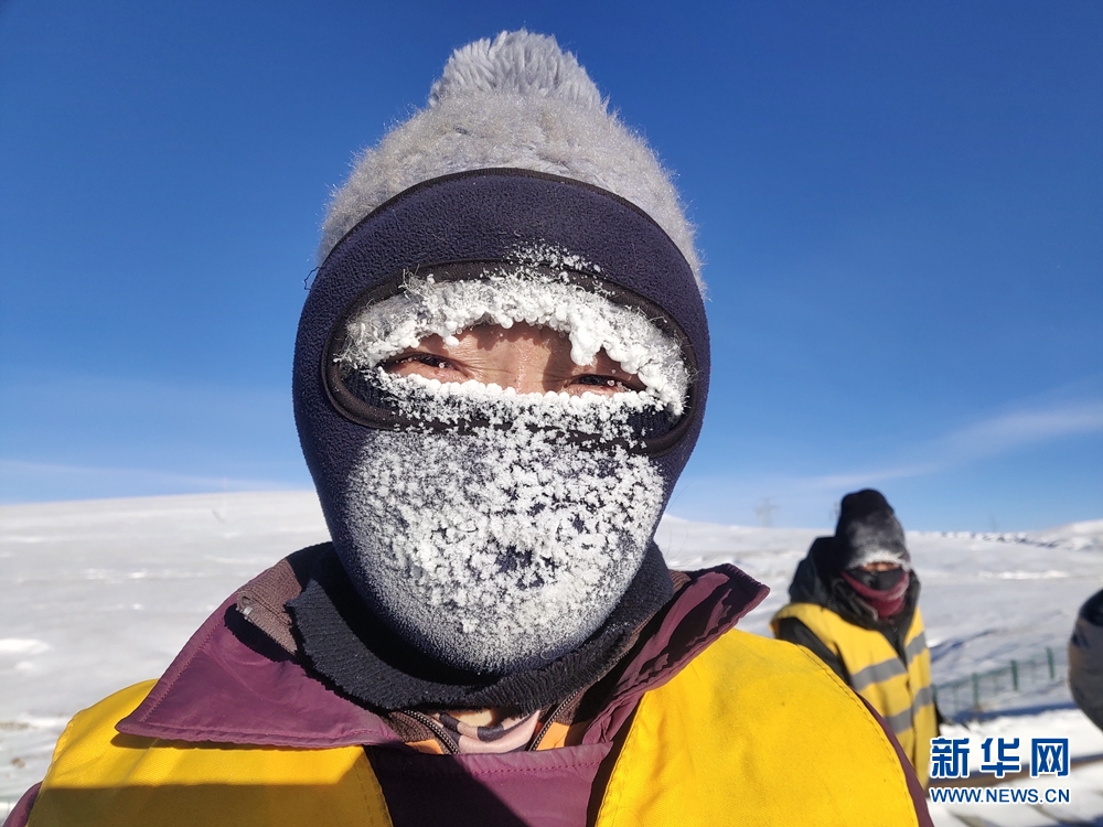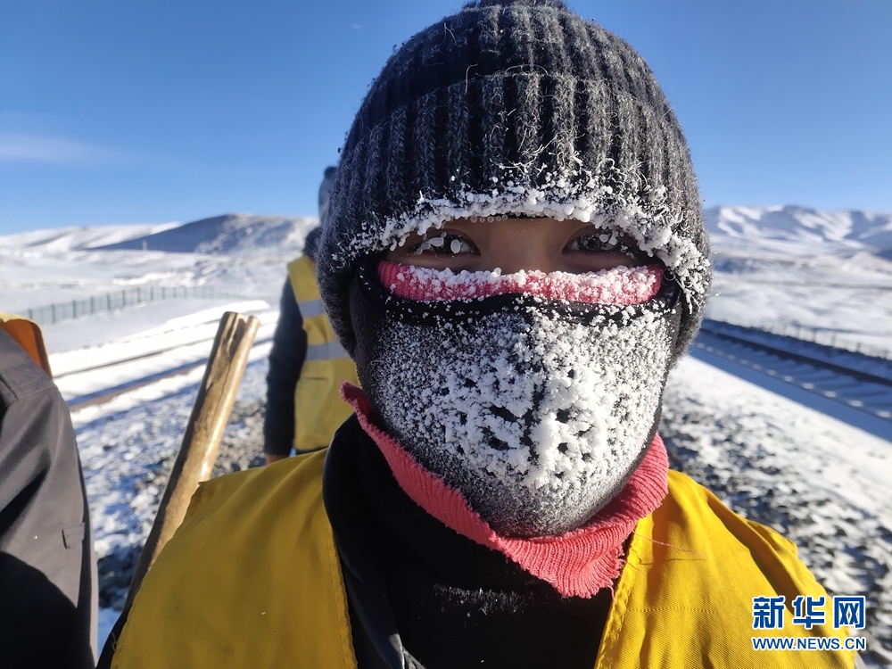 一天的工作結(jié)束后,她們的帽子、脖套上已布滿厚厚的冰霜。圖為中國鐵路青藏集團公司格爾木工務(wù)段職工才仁文毛。