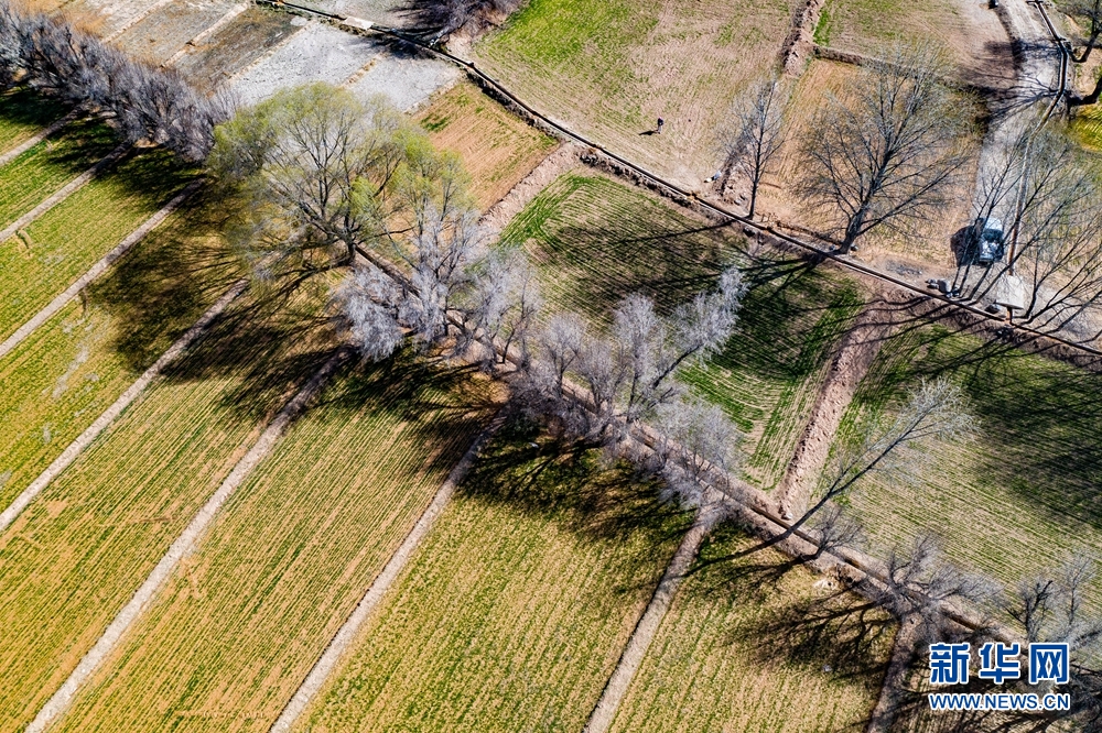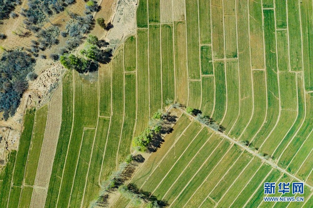 一塊塊麥田錯落有致裝扮著大地。新華網 宋忠勇 攝