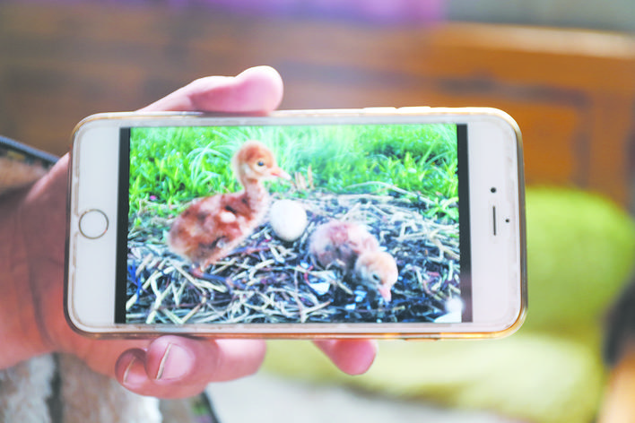 “我們與這對(duì)黑頸鶴相識(shí)五年之久了,每年三月,它們都會(huì)從云南遷回這里?;貋肀囟ń?jīng)過監(jiān)測(cè)站門前,我們就像親人一樣?!比缈颇贸鍪謾C(jī)翻看在巡護(hù)期間拍到的黑頸鶴影像,講起了他們和黑頸鶴夫婦的故事。