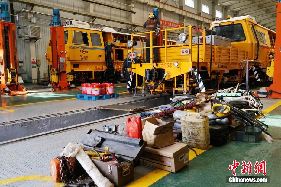 4月8日,在青藏集團(tuán)公司西寧工務(wù)機(jī)械段檢修車間內(nèi),職工正為檢修大型養(yǎng)路機(jī)忙碌著。因高原海拔高、冬季鐵路線路質(zhì)量不易控制,西寧工務(wù)機(jī)械段施工季均在每年4月份至11月份,作業(yè)范圍覆蓋整個(gè)青藏鐵路。此前,所有大型養(yǎng)路機(jī)械都需進(jìn)行設(shè)備年度集中修,經(jīng)維修作業(yè)裝置、檢查電路及液壓系統(tǒng)、探傷車軸損傷、校驗(yàn)制動(dòng)閥件等并檢驗(yàn)合格后才能上線作業(yè)。檢修車間每年的年度集中修都在檢修庫內(nèi)進(jìn)行,俗稱“大機(jī)4S店”。
