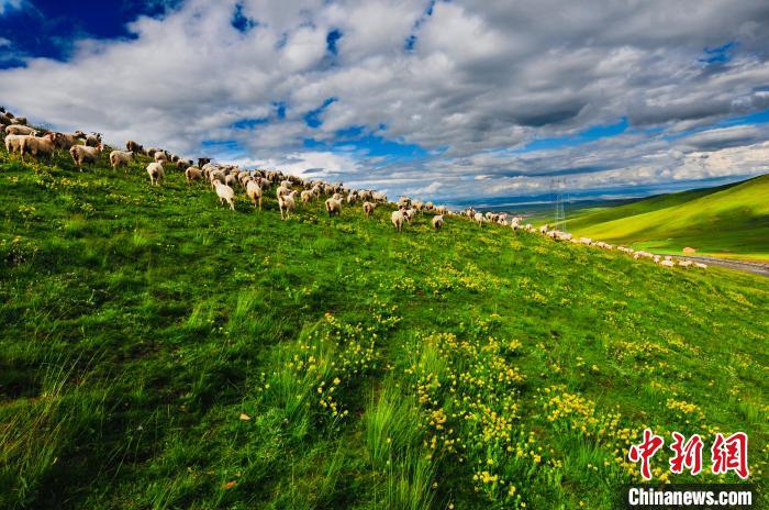 圖為天峻縣境內(nèi)的草場上羊群在奔跑。天峻縣委宣傳部 供圖