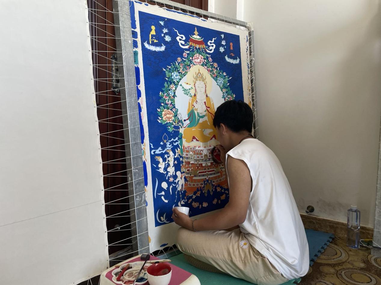 作為熱貢藝術(建筑彩繪)省級傳承人的更登,2007年3月成立黃南州更登熱貢藝術有限公司,先后培養(yǎng)了100多名優(yōu)秀的唐卡藝人,自公司成立以來累計培養(yǎng)學員410人,其中300余人現(xiàn)已成為熱貢藝人群體中的精英人才,公司助力200多戶脫貧戶增收致富。