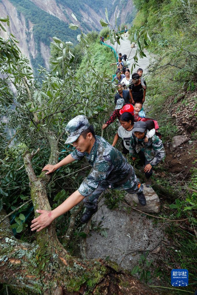 9月6日,瀘定縣得妥鎮(zhèn)灣東村村民向外疏散。新華社記者 沈伯韓 攝