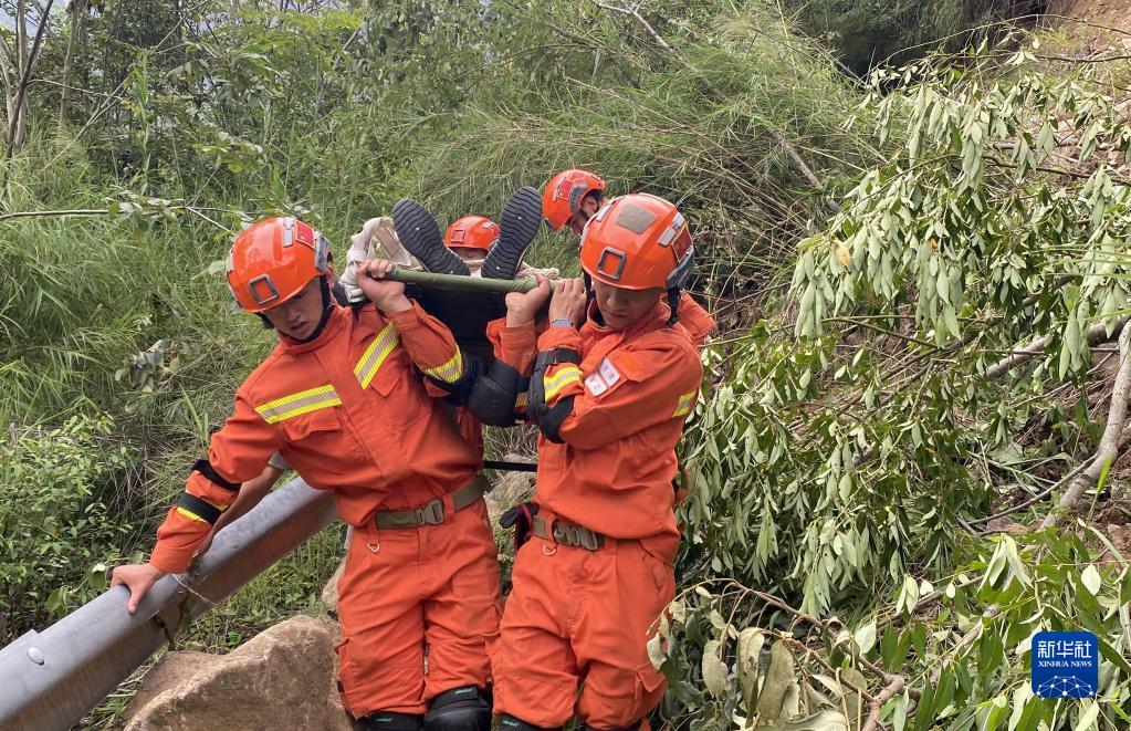 9月6日,四川森林消防總隊甘孜支隊消防員在瀘定縣得妥鎮(zhèn)紫雅場村轉運傷員。新華社 魏紅 攝
