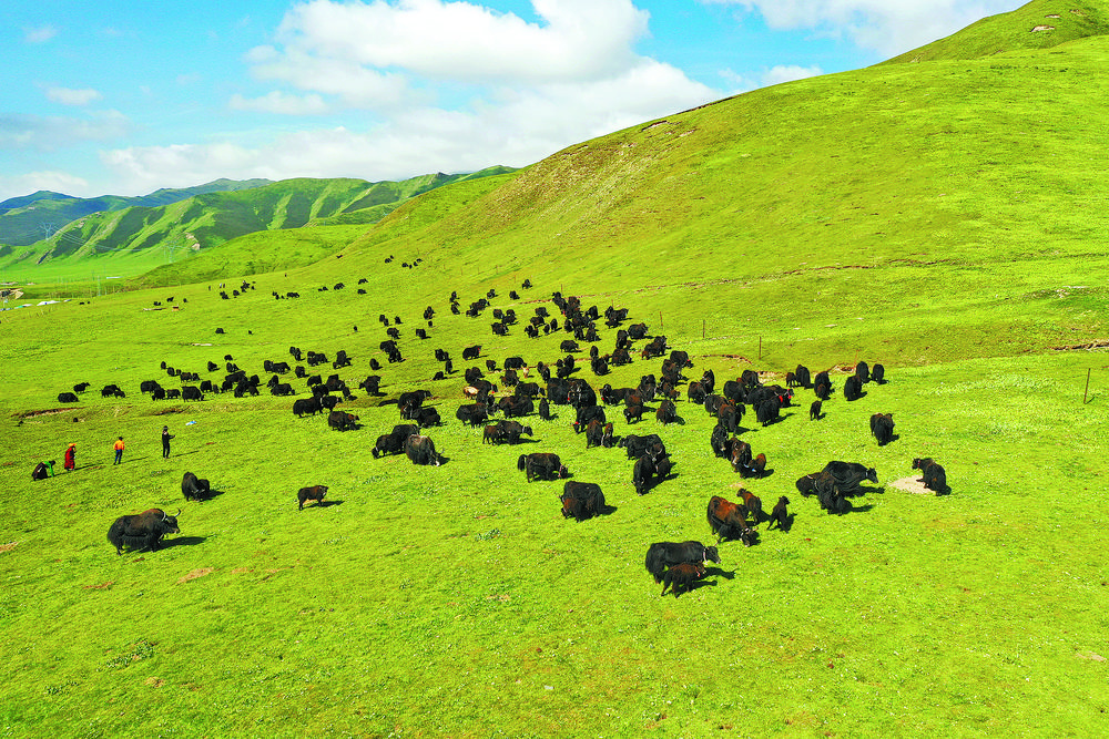 同德草原上成群的良種牦牛。洪玉杰 攝