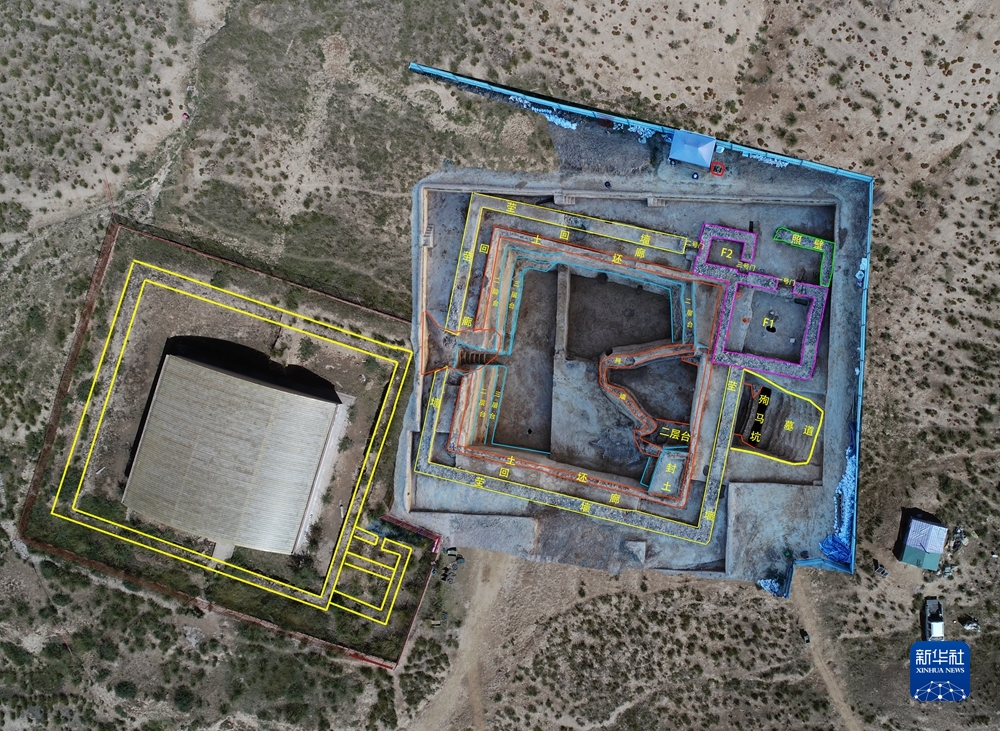 “2022年的工作重點是對2007QM1進行保護性清理發(fā)掘?!敝袊鐣茖W院考古研究所副研究員韓建華介紹,目前2007QM1清理發(fā)掘工作已經(jīng)完成。據(jù)介紹,2007QM1位于2018血渭一號墓西側(cè),緊挨2018血渭一號墓西塋墻。早年已發(fā)掘出塋墻、地上建筑、墓道、甬道、照墻和墓室,但未公布考古資料。為保護展示遺址,經(jīng)重新發(fā)掘,確認該墓墓園形制和規(guī)模與2018血渭一號墓墓園相似。
