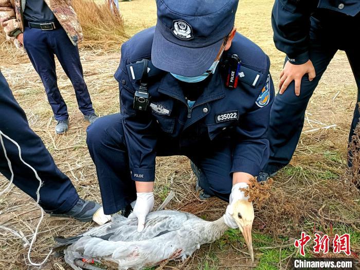 青海門源警方救助國(guó)家一級(jí)保護(hù)動(dòng)物黑頸鶴