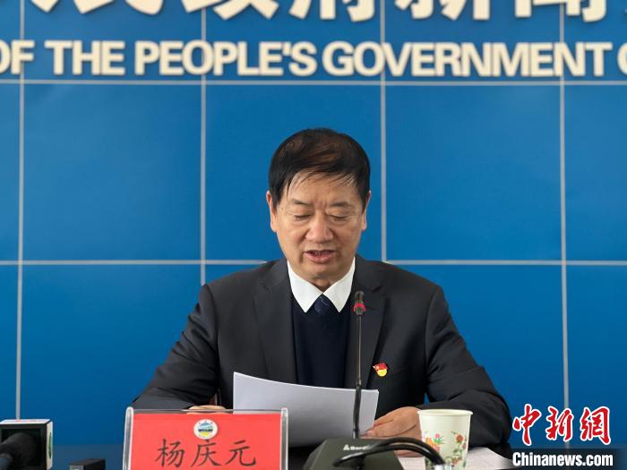 圖為青海湖景區(qū)保護利用管理局副局長楊慶元在新聞發(fā)布會上作發(fā)布。李江寧 攝
