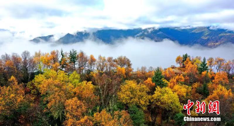 深秋時(shí)節(jié),四川馬爾康市馬爾康鎮(zhèn)阿底村賽馬山迎來彩林觀賞的最佳季節(jié)。放眼望去,海拔3500米的賽馬山上彩林連綿延伸至茫茫云海,遠(yuǎn)方雪山四面環(huán)繞,宛如仙境一般。阿壩州文體旅游局供圖