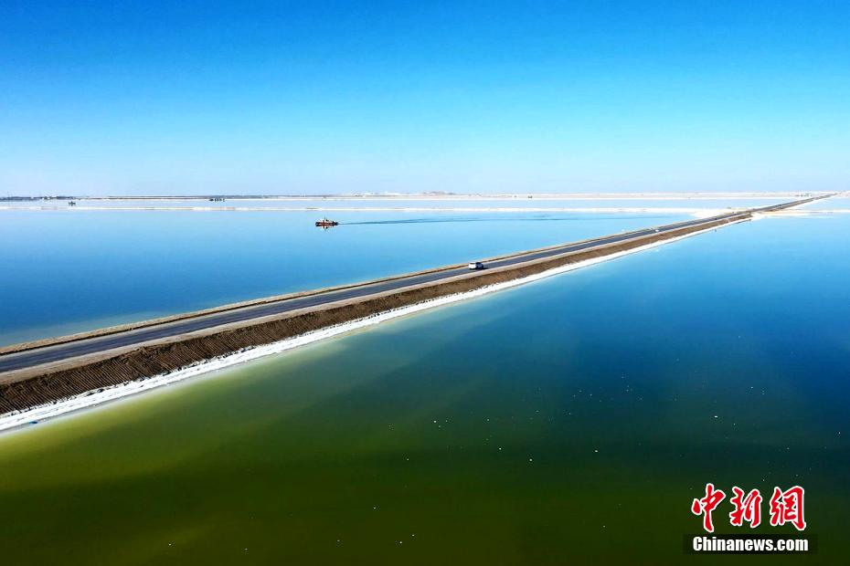 高原深秋,攝影愛好者在素有中國聚寶盆之稱的青海省海西蒙古族藏族自治州,拍攝察爾汗鹽湖的秋日美景。畫面中“萬丈鹽橋”“漂浮”在湖面上,翠綠或是淺綠色的鹵水好似盛在“聚寶盆”里的寶玉,秀色可餐。由于水分不斷蒸發(fā),鹽湖上形成堅(jiān)硬的鹽蓋,青藏鐵路和青藏公路直接修建于鹽蓋之上。察爾汗鹽湖蘊(yùn)藏有豐富的氯化鈉、氯化鉀、氯化鎂等無機(jī)鹽,總儲量達(dá)20多億噸,為中國礦業(yè)基地之一。 包雷 攝