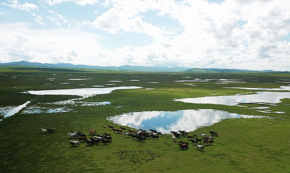 深秋,從空中俯瞰平均海拔3500多米的瑪曲濕地,大大小小的湖泊如珍珠般灑落在草原上,上萬(wàn)只候鳥在這里安心度過繁殖季,準(zhǔn)備飛往南方過冬。