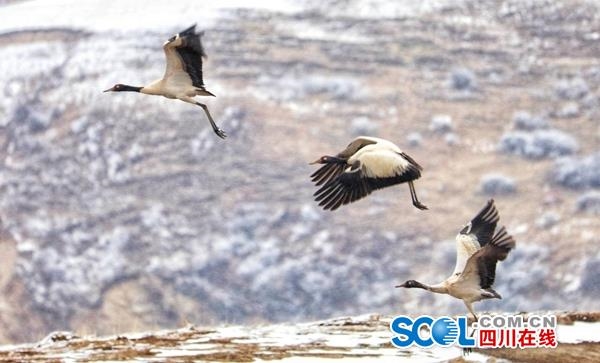 3月16日,在四川省阿壩州紅原縣安曲鎮(zhèn)的草原濕地,到處是雪茫茫的一片,從云南、貴州等地越冬歸來的一群黑頸鶴在此嬉戲覓食。[詳細(xì)] -