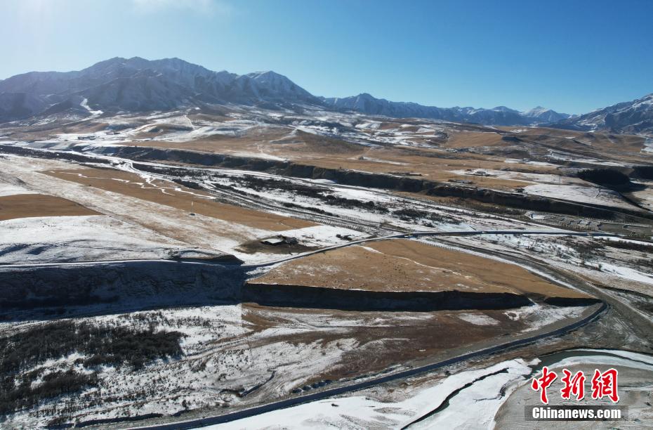 航拍雪后青海黃河岸畔藏族村落:阡陌交通,宛如仙境