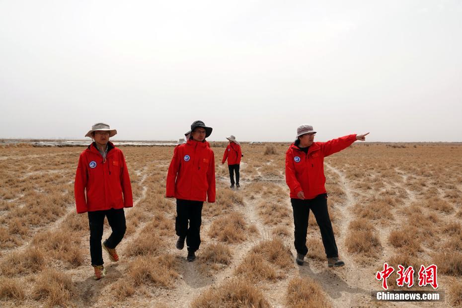 第二次青藏科考中科院空天院分隊一行在格爾木西河流域廣袤的戈壁荒漠及濕地上,為新建觀測站勘查選址。孫自法 攝