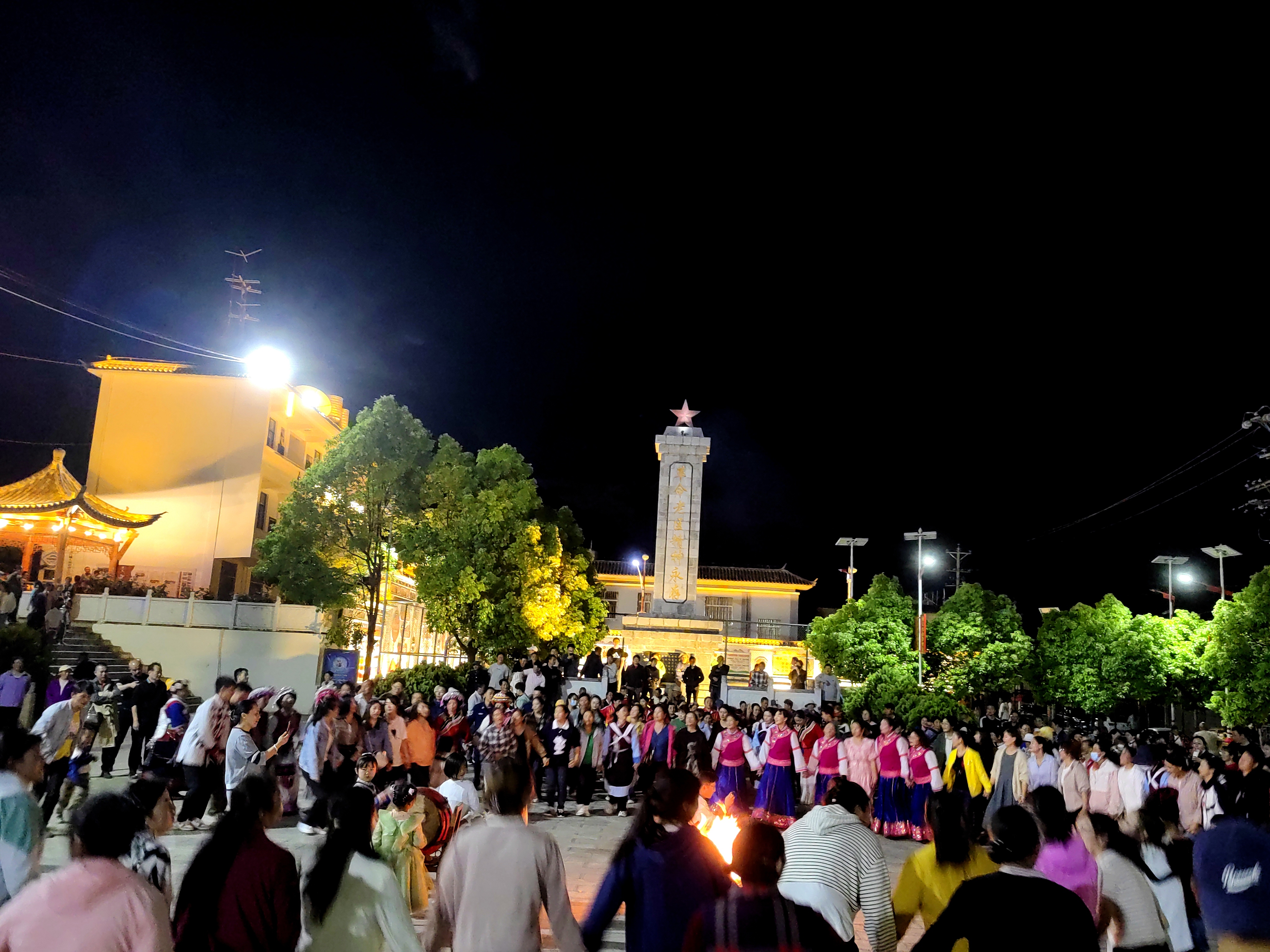 天還沒黑,金江紅色文化廣場(chǎng)上已經(jīng)圍了不少人,當(dāng)?shù)丶{西族、傈僳族等各族群眾身著節(jié)日盛裝,等待著晚會(huì)的開始,