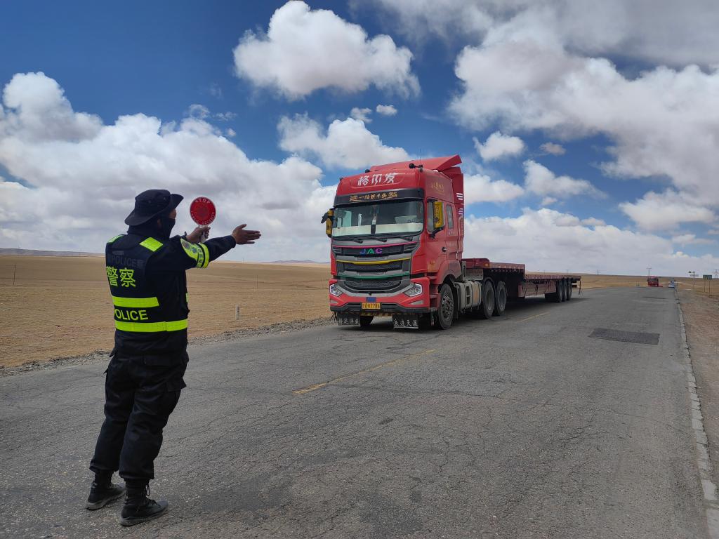 三江源國家公園長江源園區(qū)可可西里管理處保護(hù)站工作人員引導(dǎo)車輛避讓遷徙羊群。(三江源國家公園長江源園區(qū)可可西里管理處供圖)