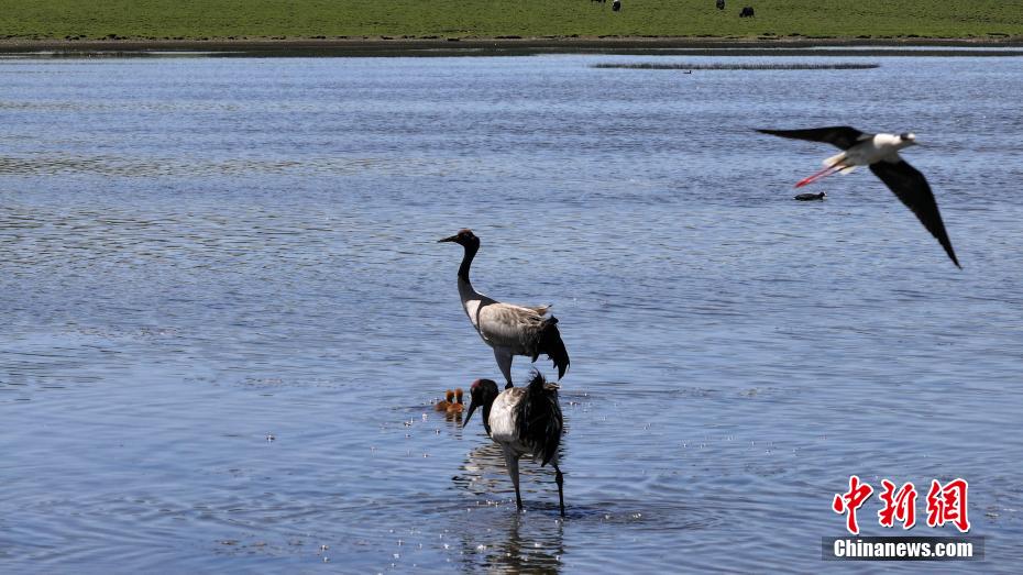 人鶴共生:濕地大省青海多措并舉引來黑頸鶴翔集