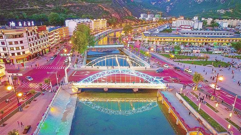 冶力關鎮(zhèn)大力發(fā)展“月光旅游”和“夜間經(jīng)濟”,打造光彩奪目、流光溢彩的最美燈光秀。韋德占 攝