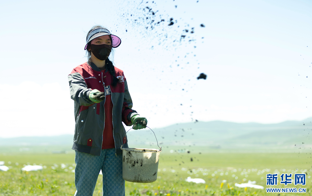 牧民們忙著給草原牧場增肥養(yǎng)護。新華網(wǎng) 王生元 攝