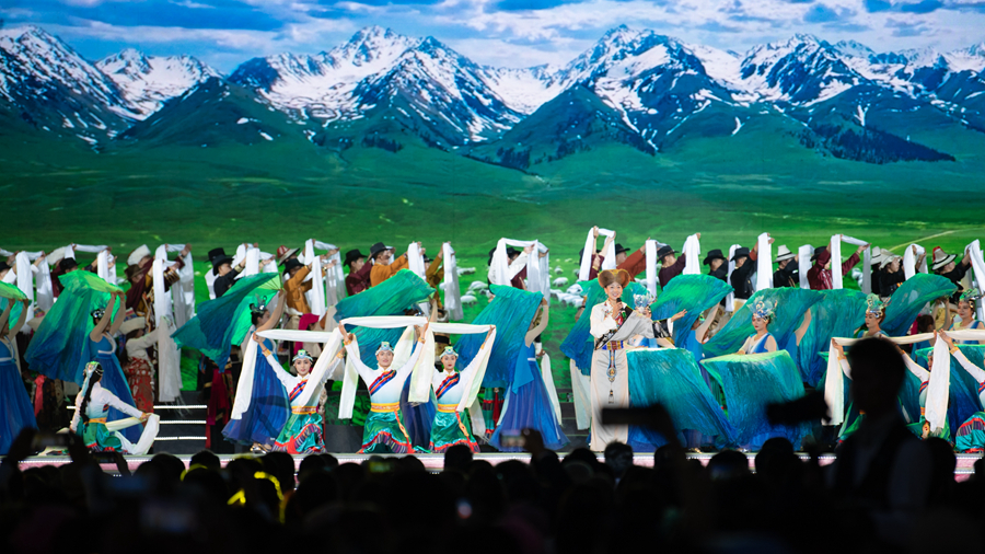 演出現(xiàn)場,燈光秀、曲藝表演、民族歌舞、服飾展演、情景朗誦等綜合藝術(shù)形式輪番上演,為現(xiàn)場觀眾獻(xiàn)上了一場精彩的視聽盛宴。其中,海南州藏族服飾藝術(shù)嘉年華是當(dāng)?shù)刈罹哂绊懥Φ拿褡逦幕放?,也是?dāng)?shù)厝罕娚钪械乃囆g(shù)盛會?;顒訉鹘y(tǒng)藏族服飾品牌與創(chuàng)新服飾時尚品牌融為一體,通過藏族傳統(tǒng)服飾和現(xiàn)代服飾展演,充分展示了海南州豐富多彩的藏族服飾文化魅力。