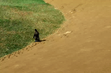 拼版照片:上圖為2002年參與防治沙漠化的工作人員在瑪曲縣黃河沿岸一處沙化草場上壓沙(新華社記者 韓傳號 攝);下圖為2023年7月6日,牧民在瑪曲縣黃河沿岸一處沙化草原治理點進(jìn)行草籽補種工作(新華社記者 張可任 攝)。