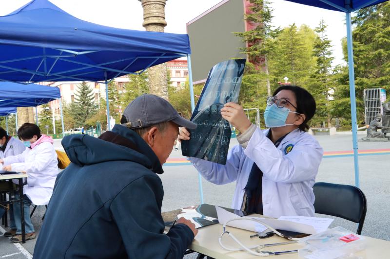 啟動儀式現(xiàn)場,服務團進行了義診活動,前來咨詢、問診的群眾絡繹不絕,專家們認真聽取病情介紹,耐心細致地為群眾聽診把脈、做病情評估及診斷開藥,并為群眾詳細科普老年腰椎、血壓、血糖等疾病的保養(yǎng)、保健等問題,指導他們正確、有效、合理用藥。“我的腸胃一直不好,前幾天就聽到宣傳講今天有專家來免費看病,我就過來再檢查,感謝他們下來坐診,方便我們老年人?!毕愀窭锢忻癫檀湎布拥卣f。