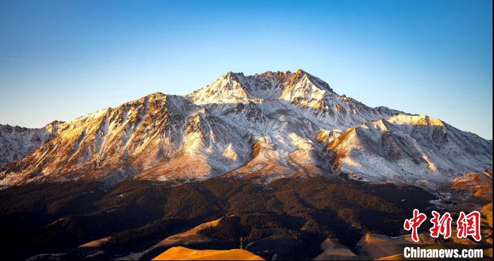 圖為祁連縣境內(nèi)牛心山被陽光映照的金黃。包雷 攝