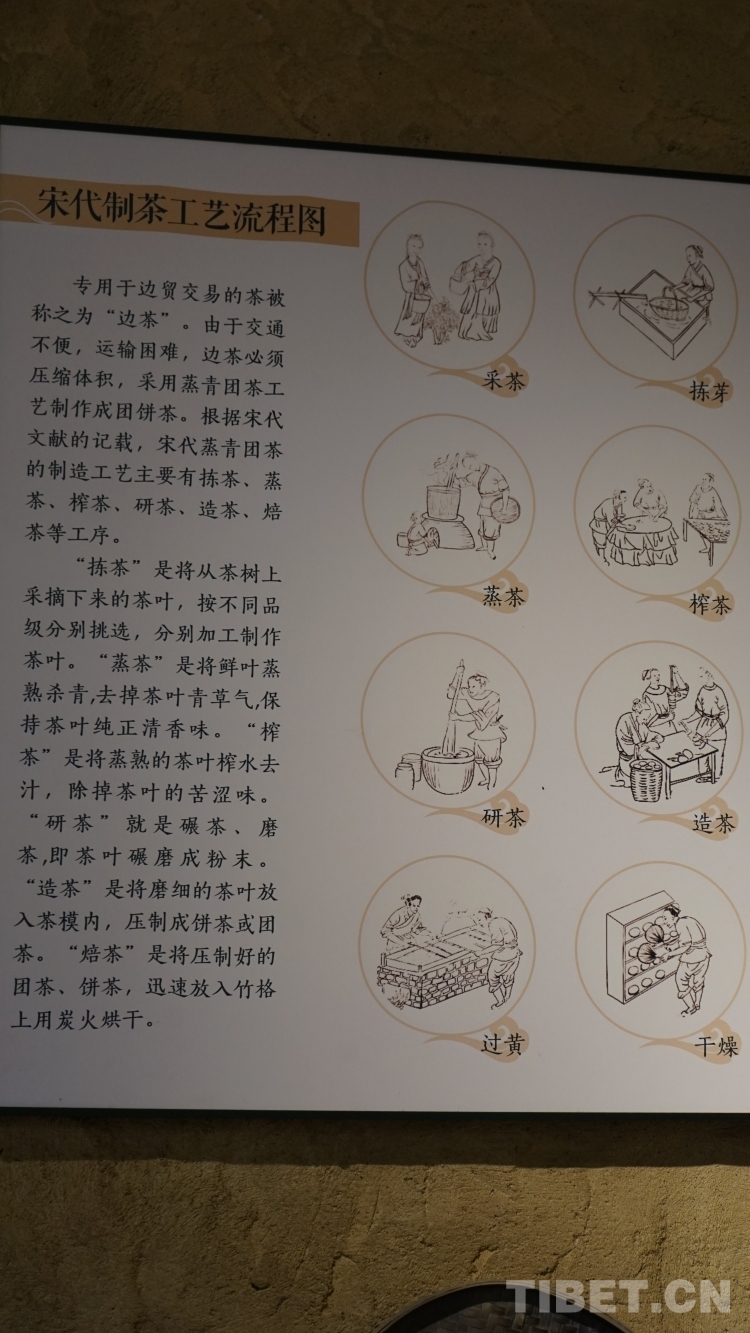 推開茶馬司的大門,出現(xiàn)在眼前的“茶馬司”石碑用漢藏兩種文字記錄著茶馬司的興衰歷史?!八螘r(shí)因連年用兵,所需戰(zhàn)馬,多用茶換取。神宗熙寧七年,派李杞入川,籌辦茶馬政事,于名山,以名山茶易馬用……明洪武時(shí),對(duì)茶葉實(shí)行官買官銷,由茶馬司主持交易……”