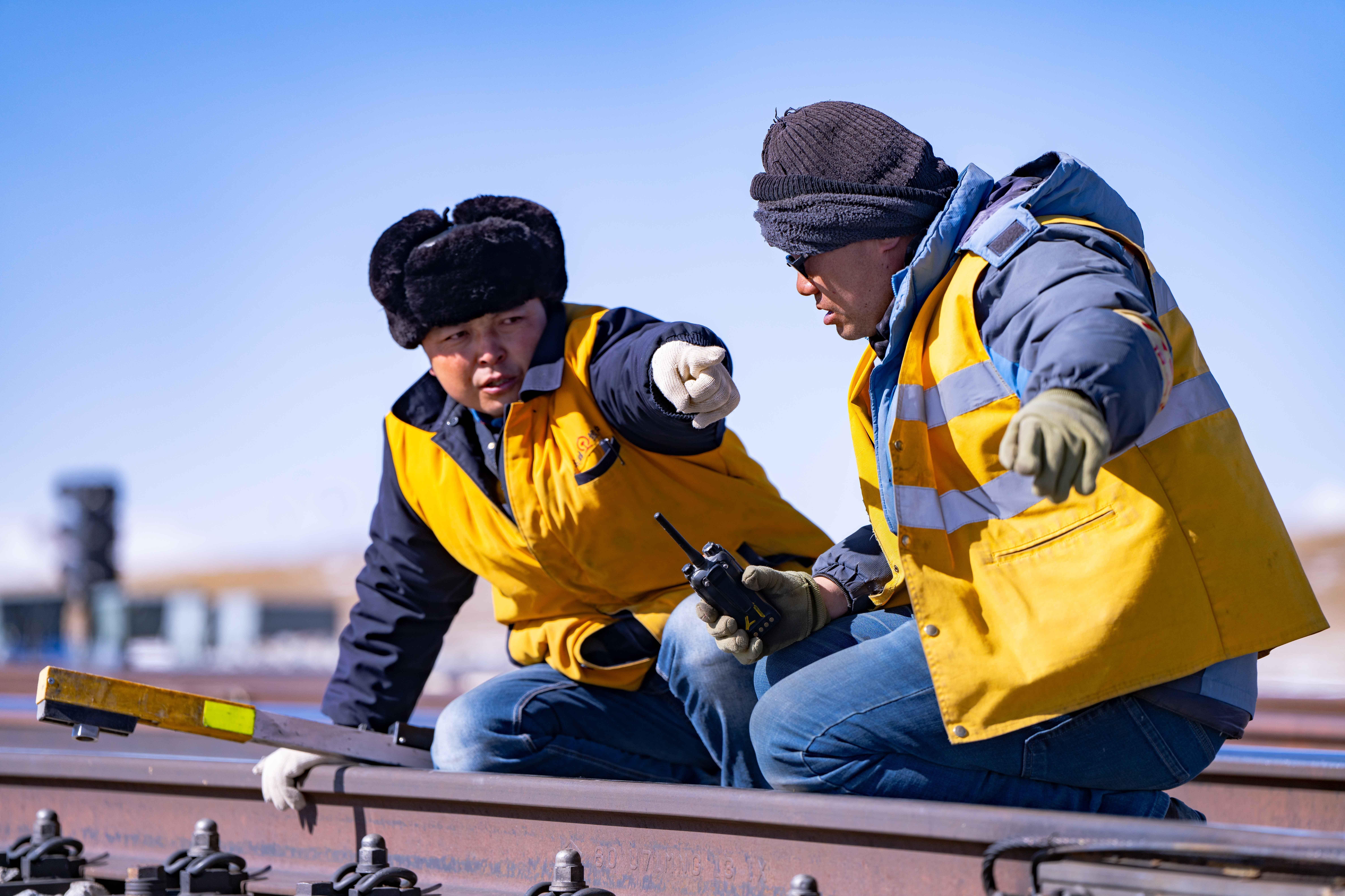 施工時間有限,工人們的速度不斷加快。馬祎俊指揮安排好幾名鐵路工人,大家各司其職,迅速開始動手維護鐵路鋼軌。天氣讓鋼軌比冰塊更加寒冷。隔著佩戴的線手套,依舊能感受到風和鐵軌上的寒冷鉆進手套里,沁到骨頭里。