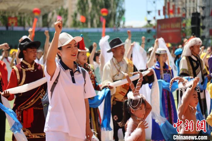 圖為格爾木民眾載歌載舞。中新社記者 張?zhí)砀?攝