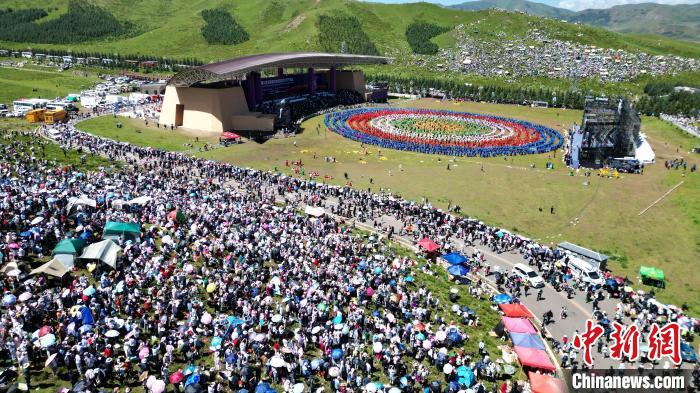 8月4日,第22屆九色甘南香巴拉旅游藝術(shù)節(jié)在甘肅省甘南藏族自治州當(dāng)周草原開幕。人們身著節(jié)日盛裝載歌載舞、歡聚一堂,馬隊(duì)巡游、千人鍋莊舞等活動(dòng)精彩上演。九色甘南香巴拉旅游藝術(shù)節(jié)既是民眾浪山聚會(huì)的節(jié)日盛會(huì),也是展現(xiàn)發(fā)展成就、擴(kuò)大對(duì)外開放的重要窗口,更是展示民俗文化、促進(jìn)廣泛交往交流交融的有效載體。(無人機(jī)照片)中新社記者 九美旦增 攝