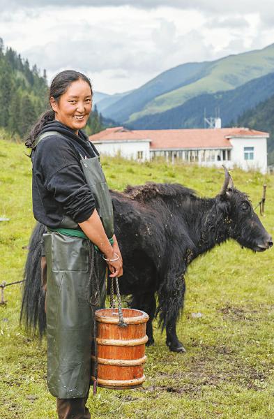 8月17日,阿壩州金川縣毛日鄉(xiāng)毛日村,村民蒲爾巴拉姆在牧場(chǎng)采集牦牛奶。采集的鮮奶會(huì)及時(shí)送至牛奶加工廠,為家里增加一筆可觀的收入。何海洋 攝