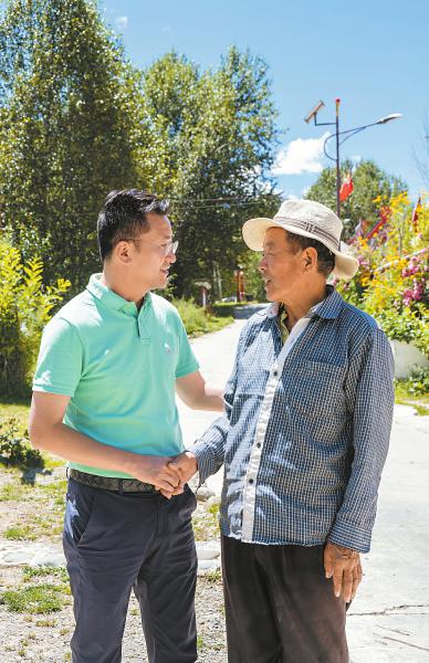 8月21日,甘孜州爐霍縣雅德鄉(xiāng)交納村“博士名譽(yù)村長(zhǎng)”張藜山(左)與村民拉家常。自去年擔(dān)任“村長(zhǎng)”以來(lái),他致力于發(fā)展電商和旅游產(chǎn)業(yè),成為鄉(xiāng)村振興的“新引擎”。何海洋 攝