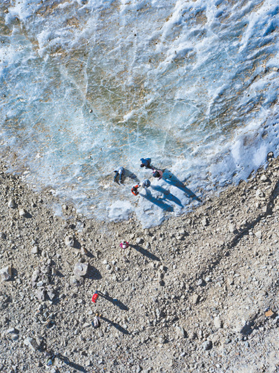 科研人員在冰面上取樣。