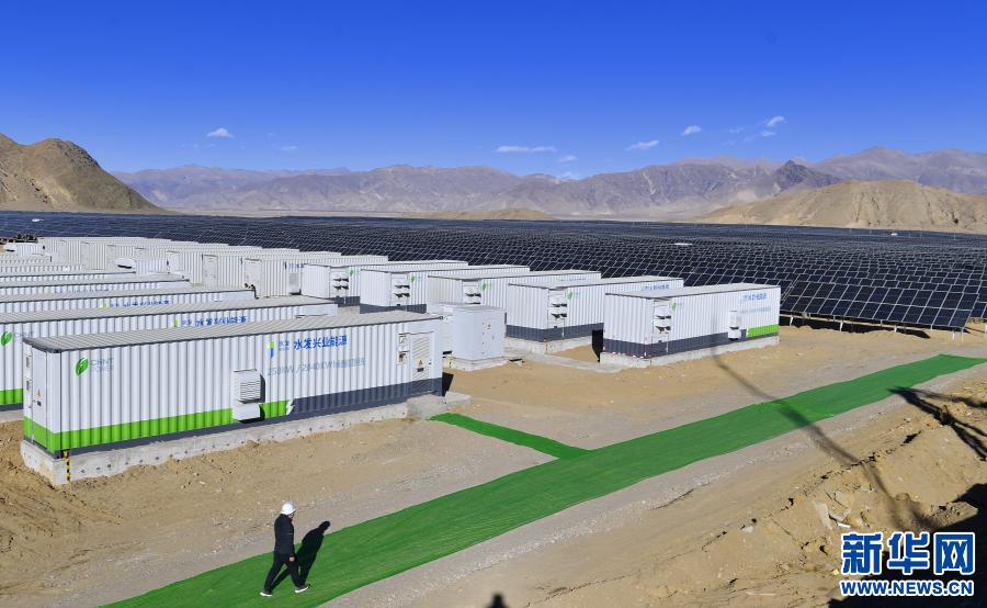 西藏日喀則市江當(dāng)現(xiàn)代生態(tài)產(chǎn)業(yè)示范園內(nèi)的50兆瓦光儲電站儲能系統(tǒng)和太陽能光伏組件(2020年12月24日攝)。新華社記者 張汝鋒 攝
