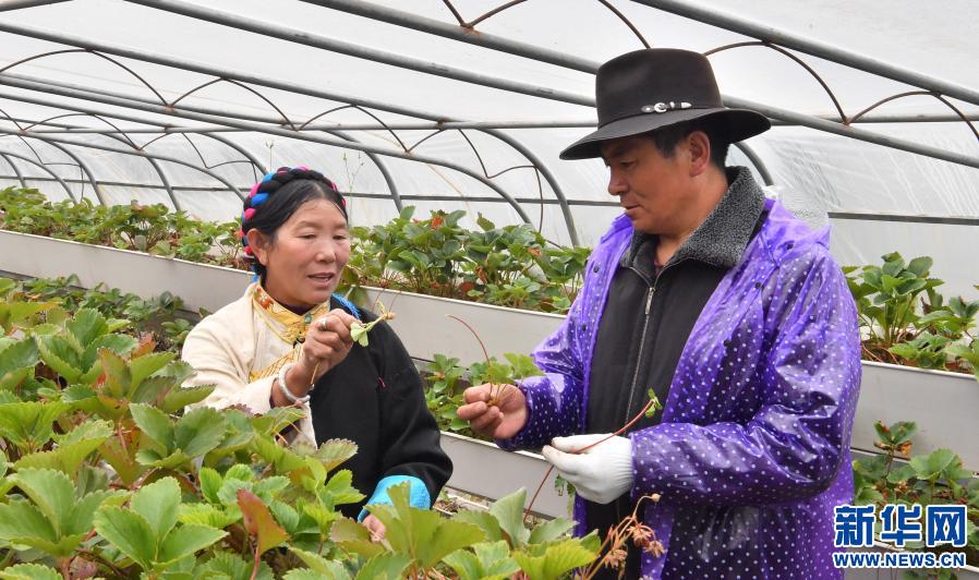 在西藏昌都市邊壩縣草卡鎮(zhèn),農(nóng)牧民科技特派員曲拉(左)在溫室大棚里給鄉(xiāng)親講解蔬菜種植技巧(2020年9月25日攝)。新華社記者 晉美多吉 攝