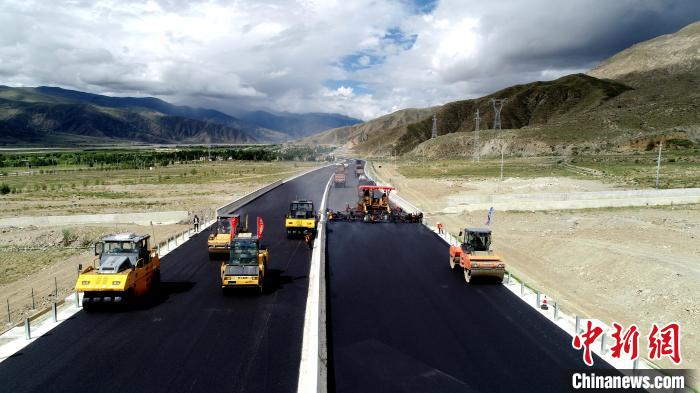 資料圖為建設中的拉薩段高速公路。西藏自治區(qū)交通運輸廳供圖